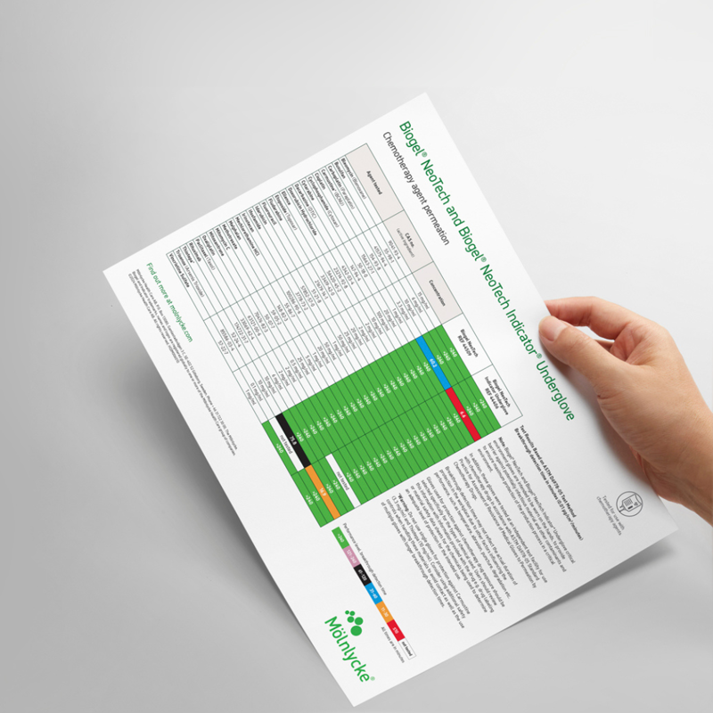 Derfor tilbyder vi detaljerede datablade med gennembrudstider for en lang række kemikalier og cytostatika.