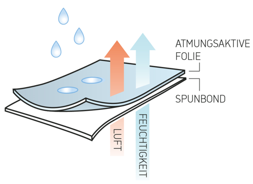 • Spinnvlies, das sich außerhalb beim Stoff befindet und dem Produkt Festigkeit verleiht.