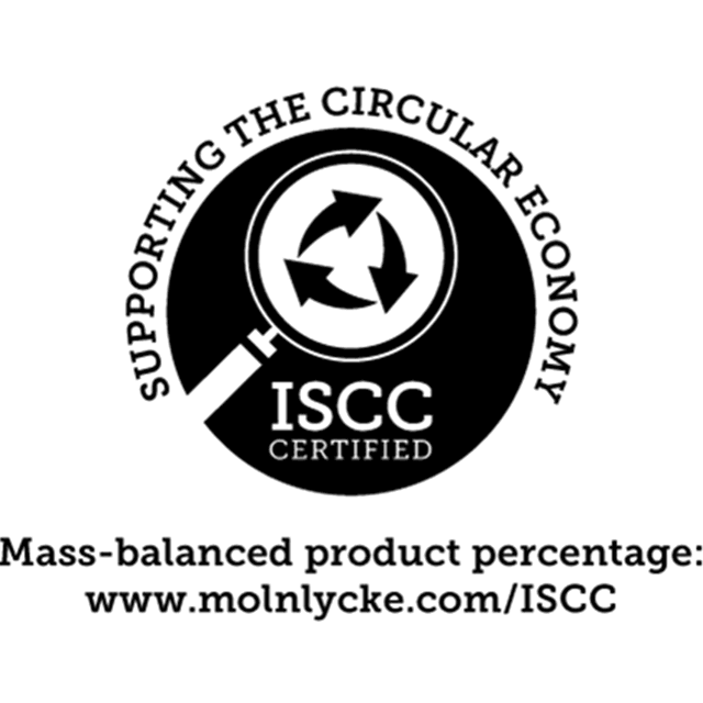 Osana sitoumustamme materiaalien tehokkaaseen käyttöön Mölnlycke on ylpeä saadessaan sertifikaatit International Sustainability and Carbon Certification -järjestelmästä (ISCC). Elinkaarianalyysimme osoittaa, että ISCC-sertifioitujen materiaalien käyttö voi auttaa vähentämään CO₂e-päästöjämme.