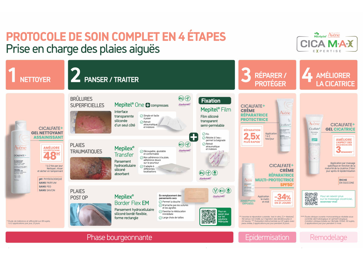 Un protocole simple, complet, éprouvé - Pour toutes les plaies aiguës, à chaque étape du soin