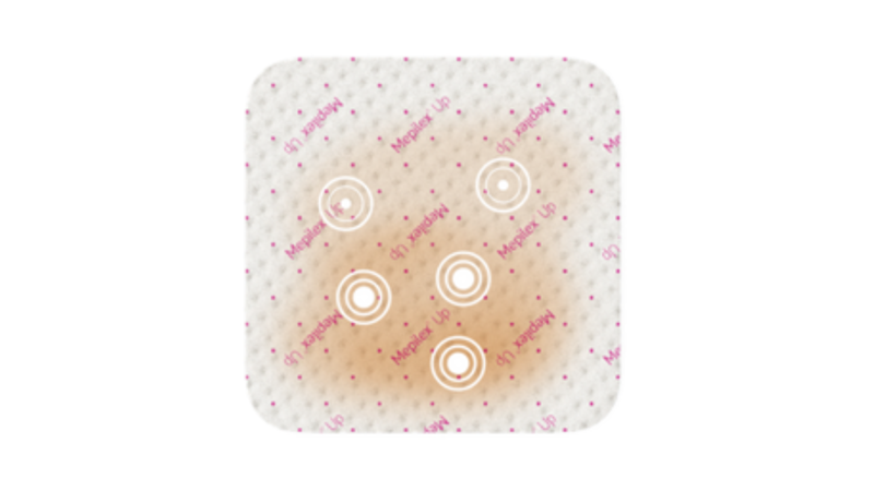 Le pansement hydrocellulaire Mepilex® Up bénéficie de tout le savoir-faire de Mölnlycke dans le traitement des plaies. Il est notamment doté de la technologie Safetac®, qui minimise les traumatismes lors du retrait.